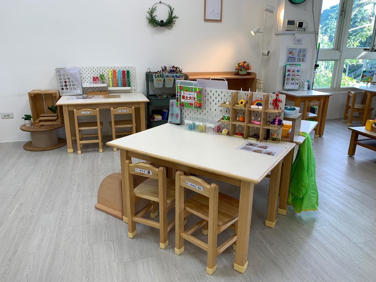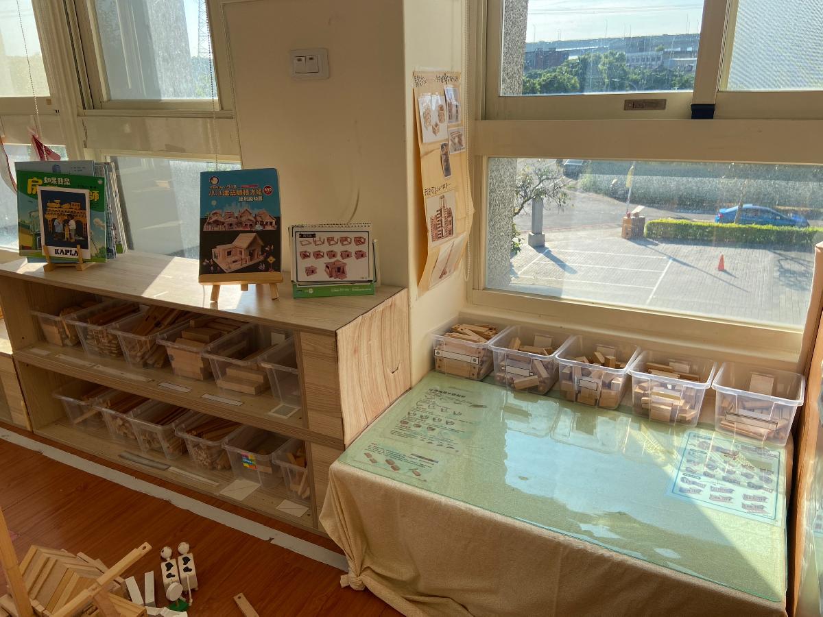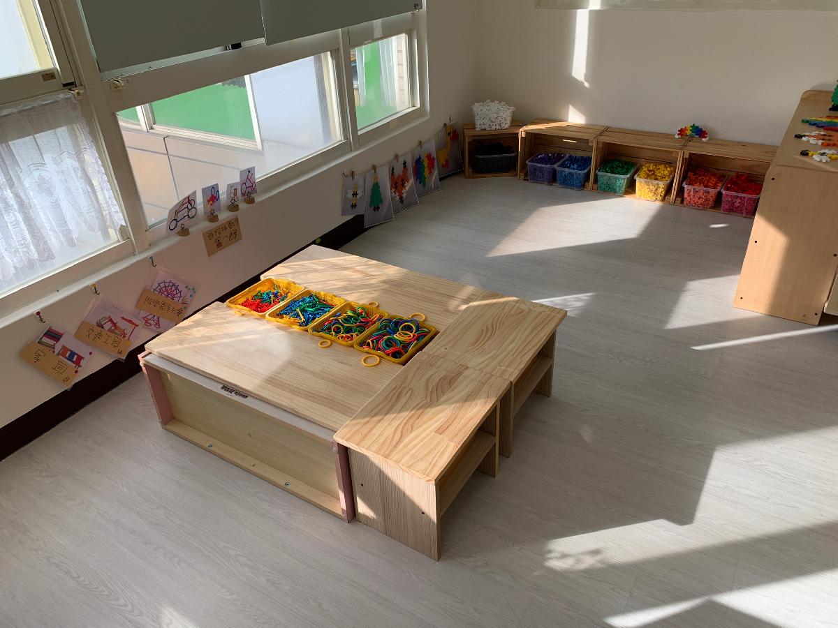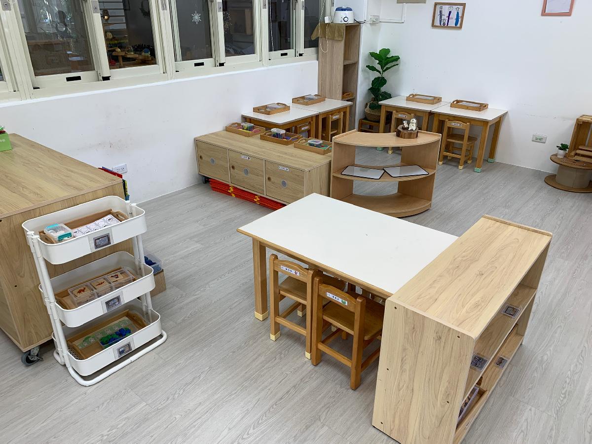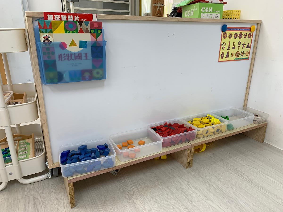 教室裡設置種類多元、內容安全豐富的學習區,孩子依興趣選擇操作教具藉由充裕的探索時間與有趣的教具建構輔助孩子的學習鷹架,引導幼兒在操作前進行計劃、過程中發現問題並解決問題、最後能有分享與修正目標的能力。