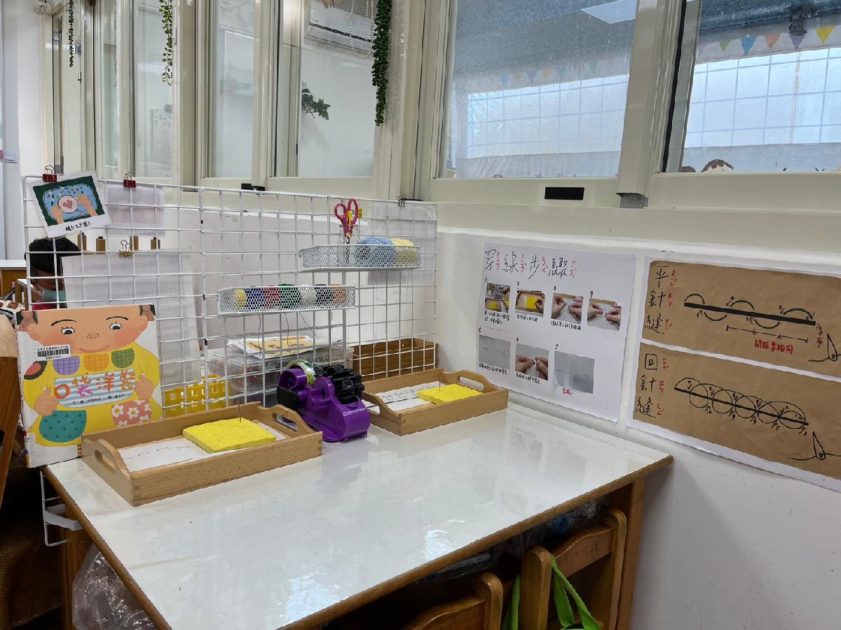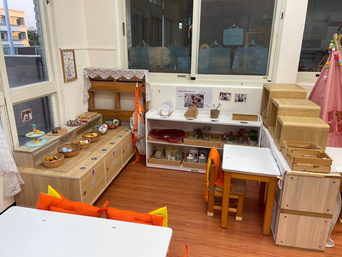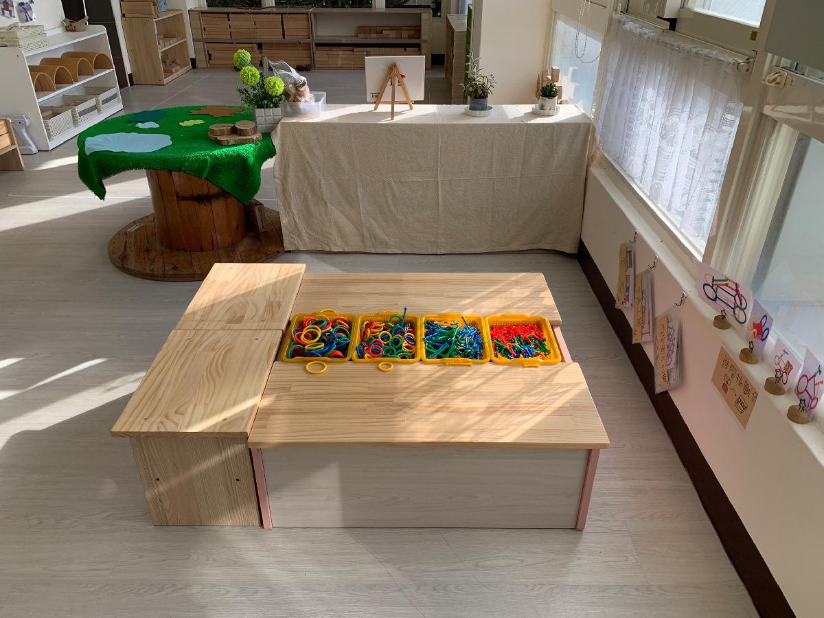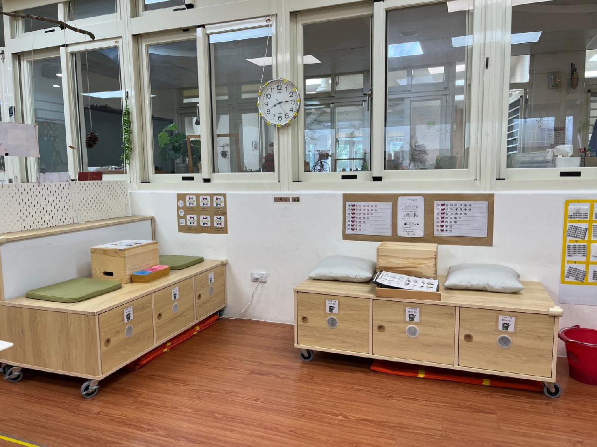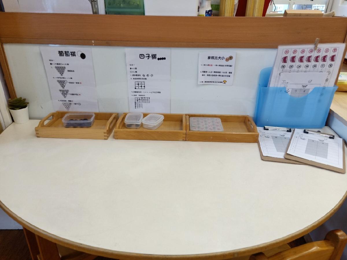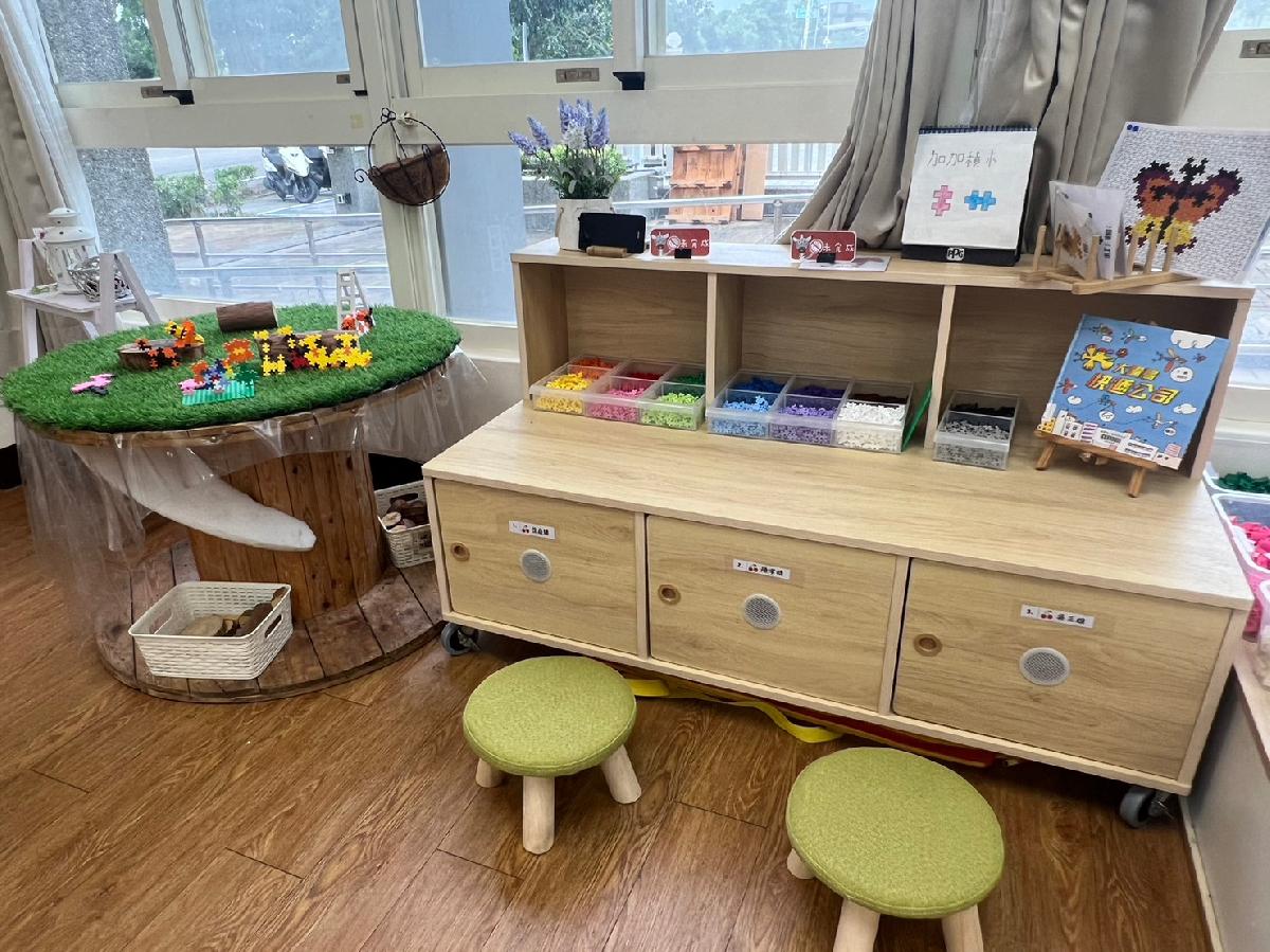 教室裡設置種類多元、內容安全豐富的學習區,孩子依興趣選擇操作教具藉由充裕的探索時間與有趣的教具建構輔助孩子的學習鷹架,引導幼兒在操作前進行計劃、過程中發現問題並解決問題、最後能有分享與修正目標的能力。