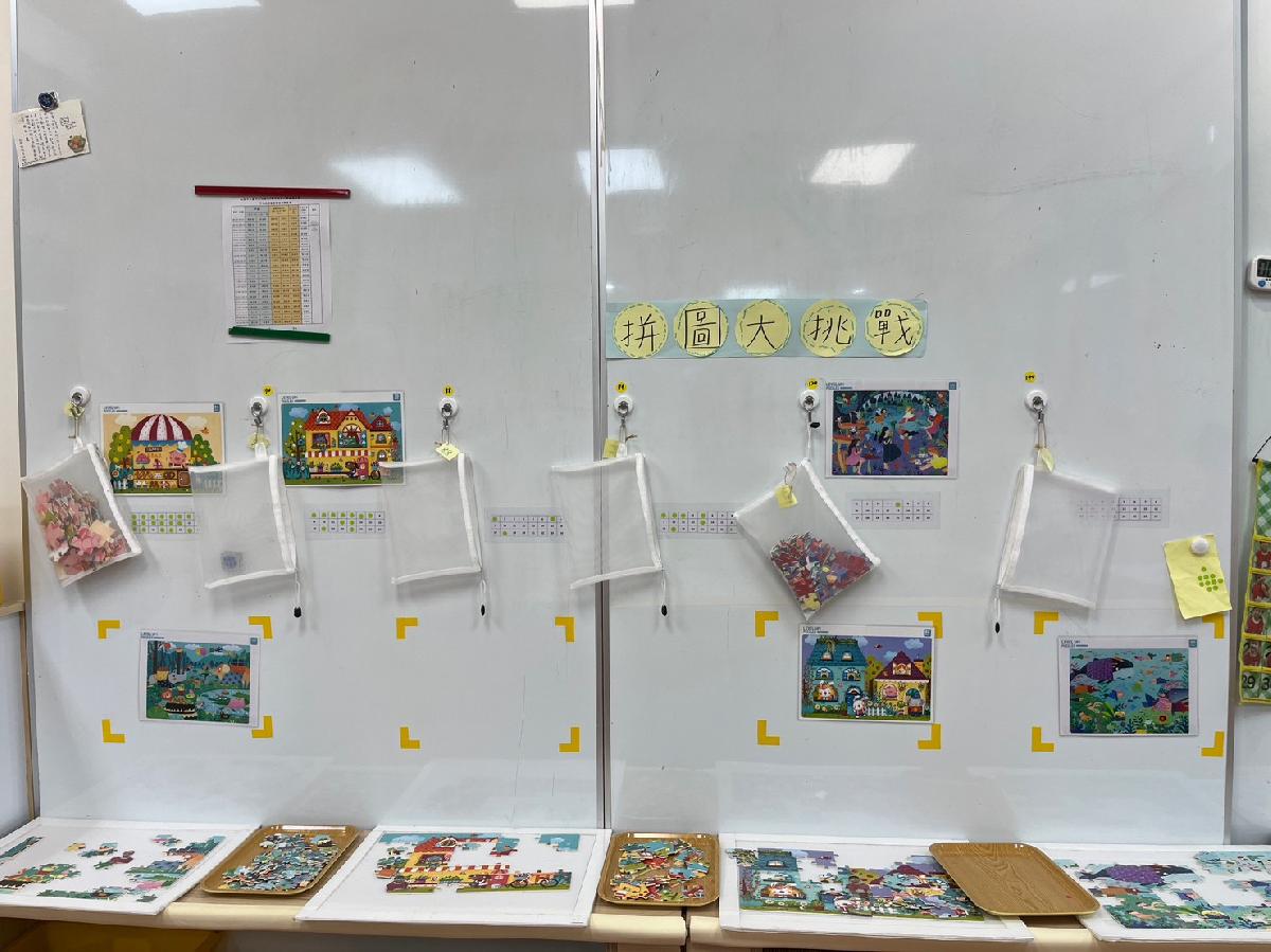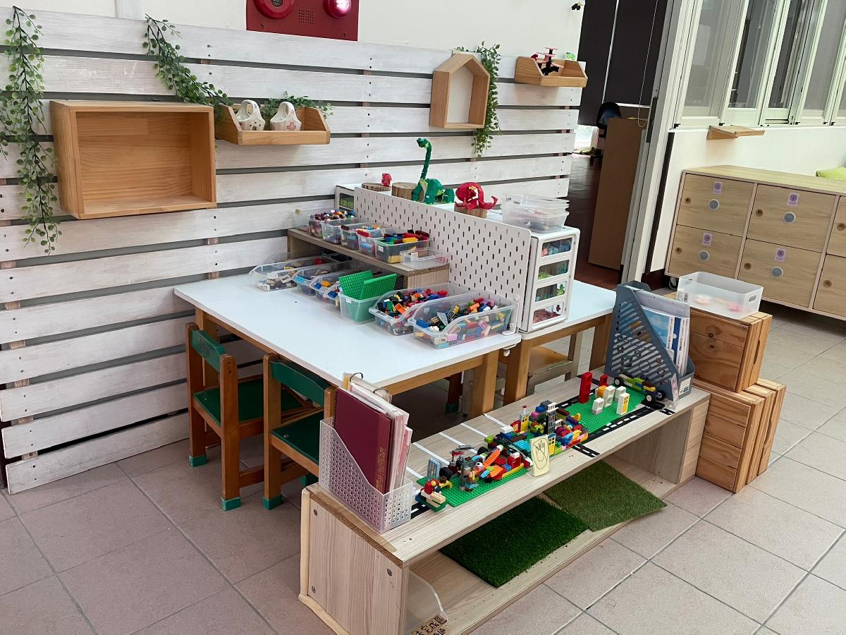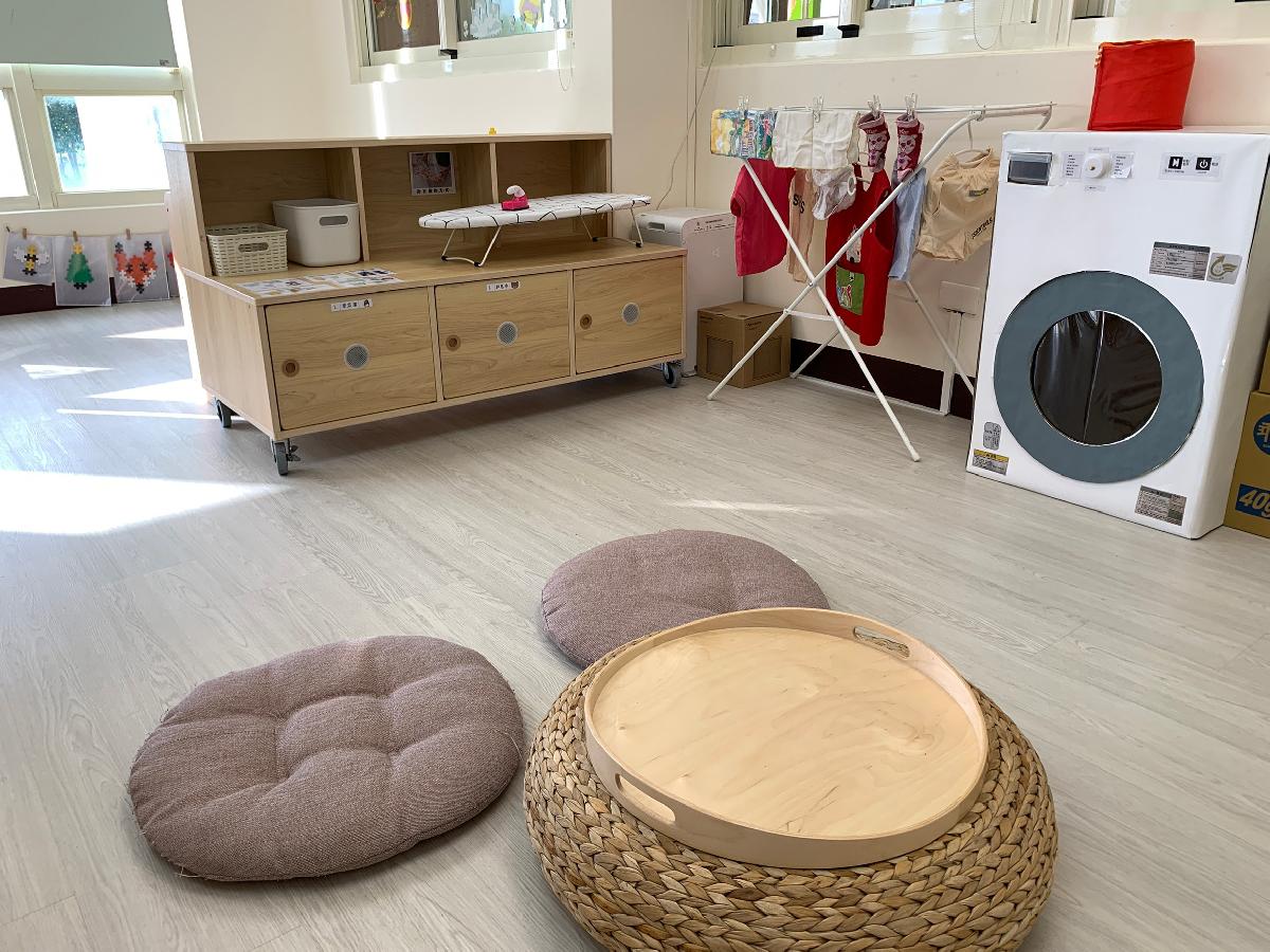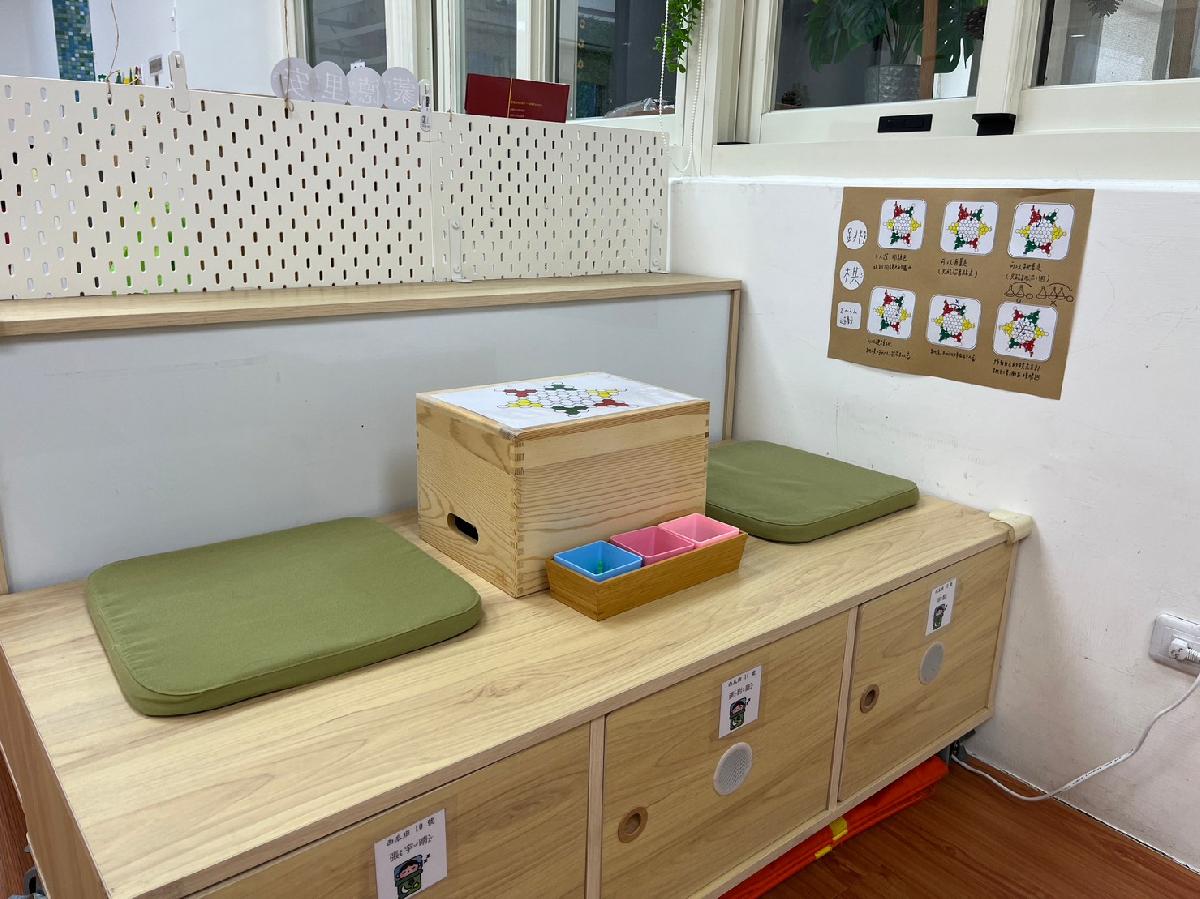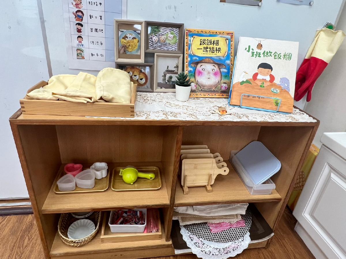 教室裡設置種類多元、內容安全豐富的學習區,孩子依興趣選擇操作教具藉由充裕的探索時間與有趣的教具建構輔助孩子的學習鷹架,引導幼兒在操作前進行計劃、過程中發現問題並解決問題、最後能有分享與修正目標的能力。