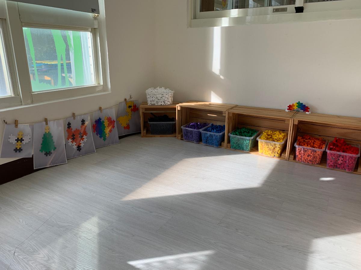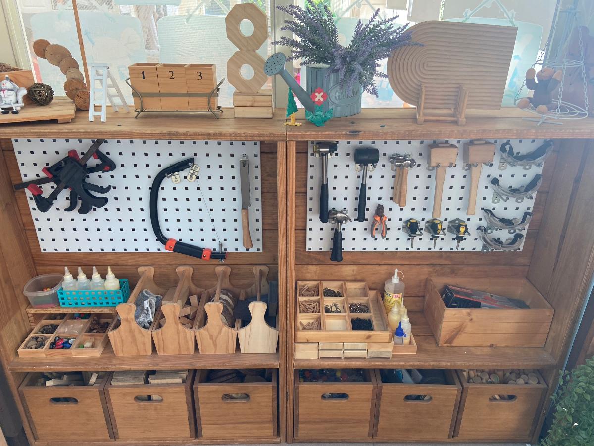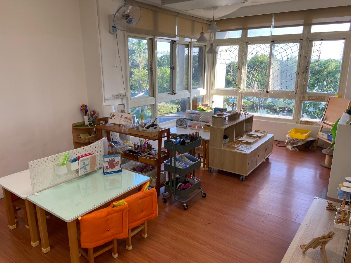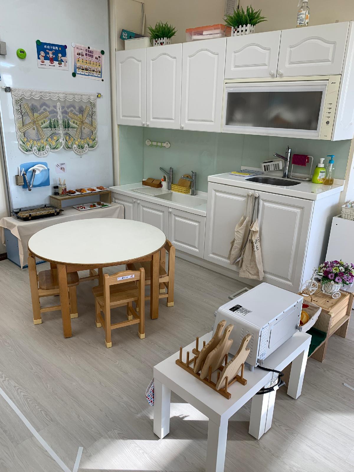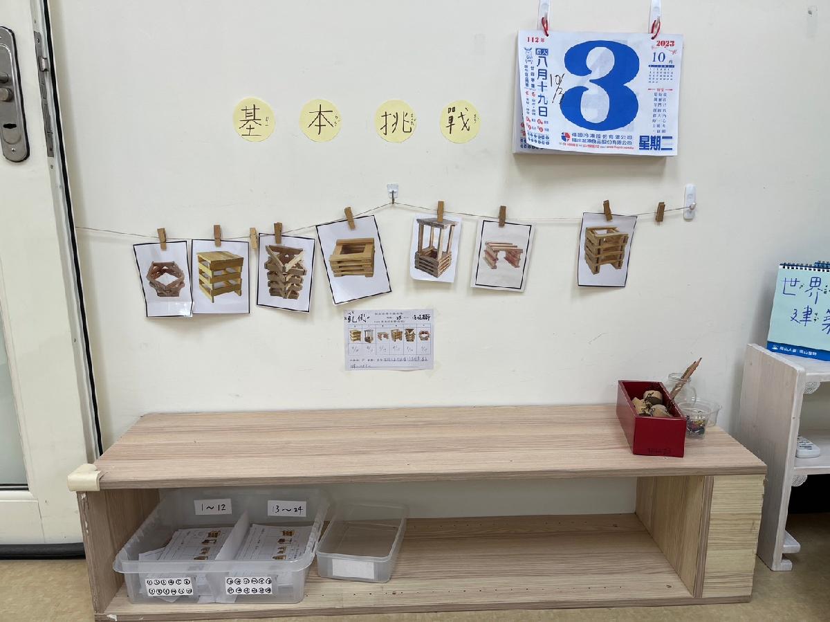 教室裡設置種類多元、內容安全豐富的學習區,孩子依興趣選擇操作教具藉由充裕的探索時間與有趣的教具建構輔助孩子的學習鷹架,引導幼兒在操作前進行計劃、過程中發現問題並解決問題、最後能有分享與修正目標的能力。